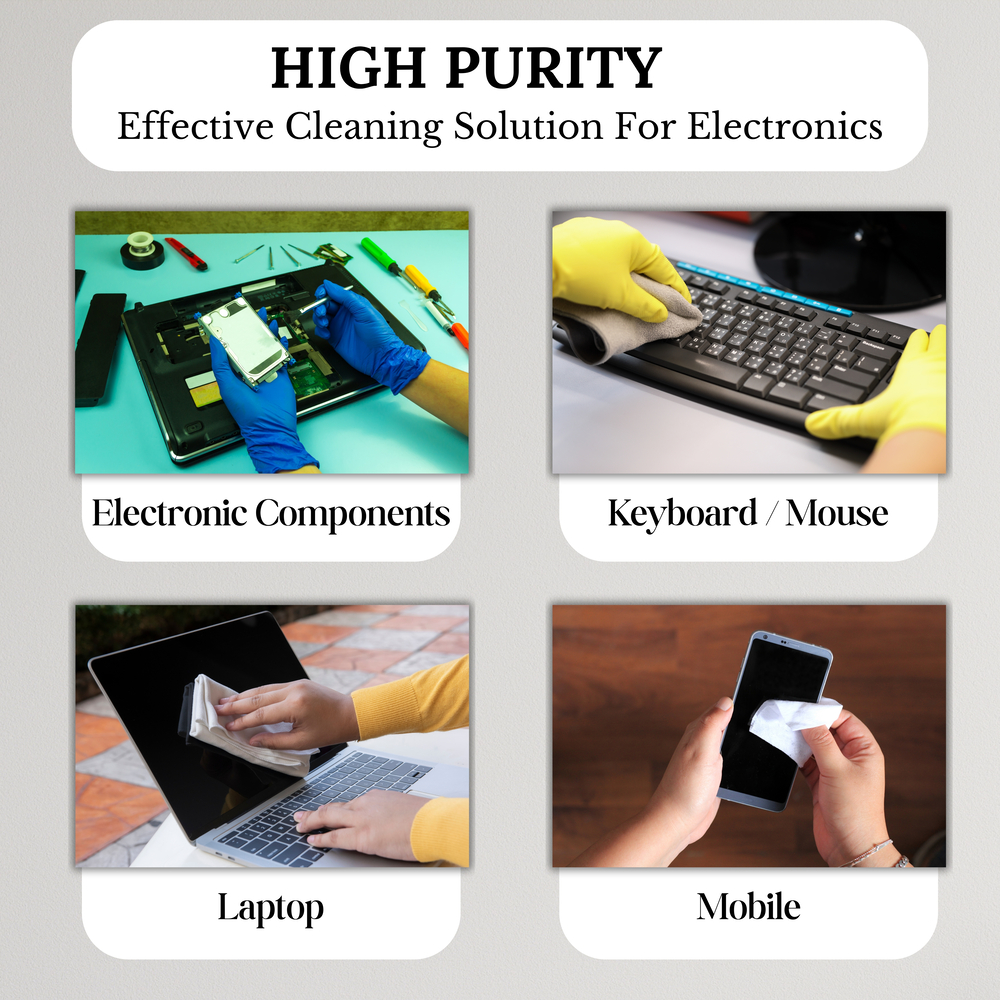 - For Electronics – Use sparingly with a cloth, brush, or swab; avoid excess liquid.