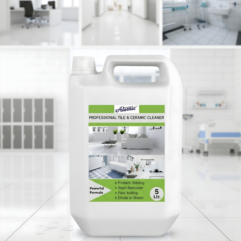 Bring back the shine of your floors and walls with ATOMIC Tile Cleaner — a powerful formula designed to remove tough stains, dirt, and grime from tiles, grout, and hard surfaces. It penetrates deep to eliminate soap scum, hard water deposits, and greasy buildup, leaving tiles spotless and hygienically clean. Suitable for ceramic, vitrified, marble, and granite tiles, it restores the original brightness without dulling the surface. With its refreshing fragrance and germ-killing action, ATOMIC Tile Cleaner keeps your floors shining and your home fresh, clean, and safe.